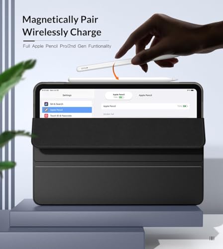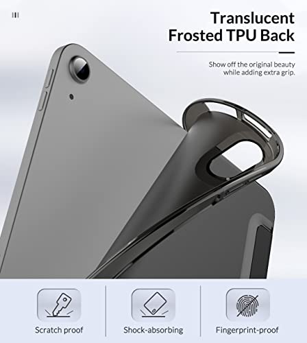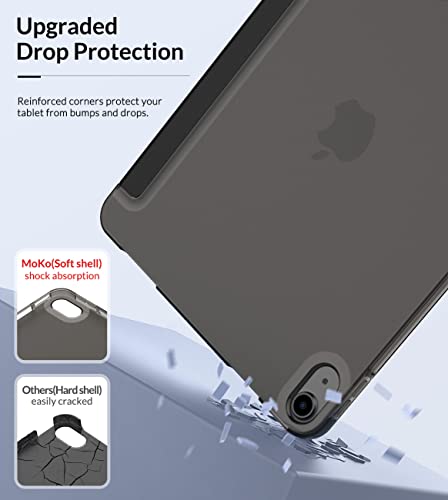 MoKo - جراب حماية لآي باد آير الجيل الرابع 2020، بغطاء رفيع ثلاثي الطيات وظهر ناعم بلوري، خاصية التنبيه والسكون التلقائي، والتعرف باللمس وشحن قلم اي باد الجيل الثاني من موكو، لون أسود