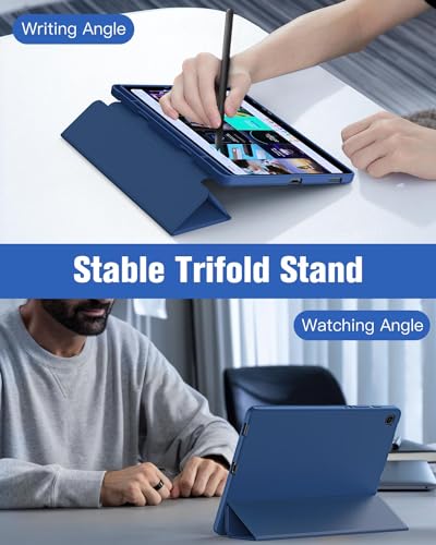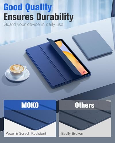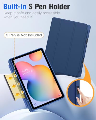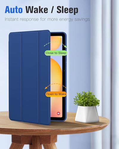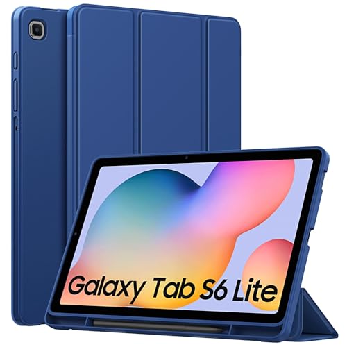 MoKo - جراب حماية لتابلت سامسونج جالاكسي S6 لايت 10.4 بوصة 2024/2022/2020 مع حامل قلم من موكو خلفي مرن ثلاثي الطيات البولي يوريثين الحراري خاصية التنشيط/السكون التلقائي أزرق كحلي