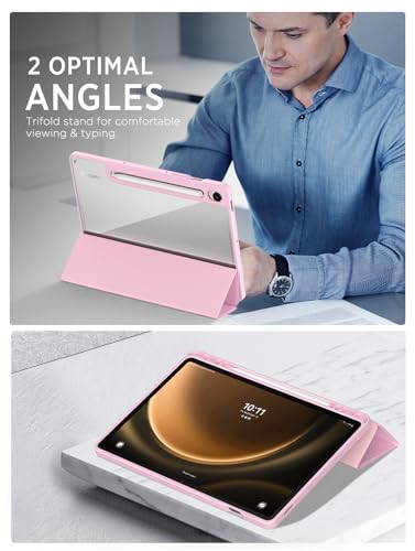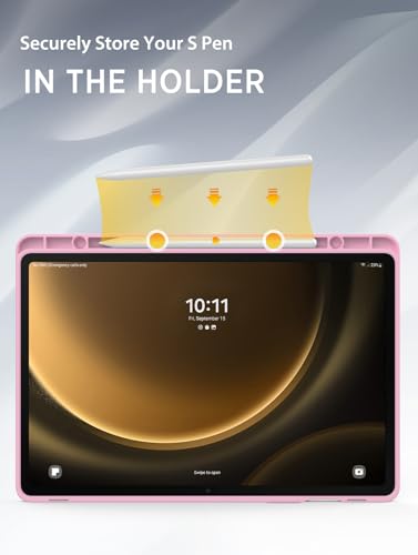 MoKo - حافظة ذكية نحيفة وخفيفة الوزن ثلاثية الطيات، بخاصية التنبيه/السكون التلقائي، لجهاز سامسونج جالاكسي تاب S9 FE 2023 شبكة الجيل الخامس 5G مع حامل قلم S من موكو، زهري