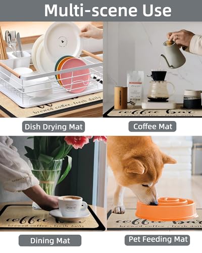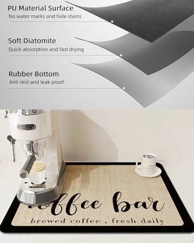 MOKUYOBY - بساط قهوة من موكويوبي مقاس 12 انش × 19 انش، بساط بار القهوة المدعوم بالمطاط، بساط تجفيف الاطباق فائق الامتصاص لطاولة المطبخ، يناسب تحت ماكينة تحضير القهوة والاسبريسو ورف الاطباق (كريمي)