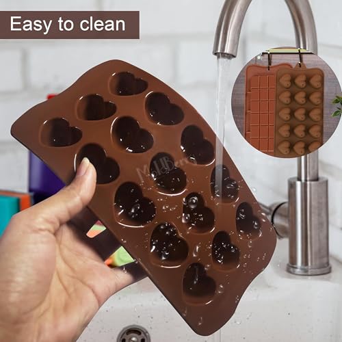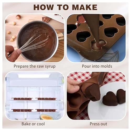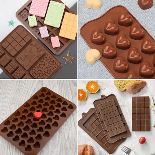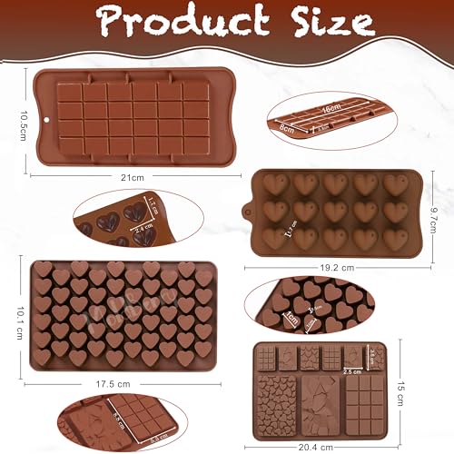 - مجموعة قوالب شوكولاتة 4 في 1 لمجموعة متنوعة: تتضمن 9 قوالب تجويف، 15 تجويف على شكل قلب، 55 قلب صغير، وقالب شوكولاتة الكنافة - مثالي للشوكولاتة والحلوى والهدايا وهدايا الحفلات.