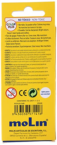 Molin - أقلام ألوان شمع بلاستيكية من مولين، متعددة الألوان، 6 أقلام، pcp420-06b