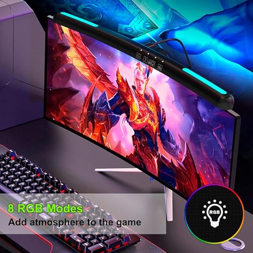 MOLOR - شريط إضاءة شاشة منحني مع إضاءة خلفية آر جي بي من مولور لشاشة الكمبيوتر المنحنية 24-27 بوصة، 3 ألوان لدرجة الحرارة وتعتيم بدون خطوات، مصباح شاشة كمبيوتر منحني بمنفذ USB، ضوء ليلي للألعاب