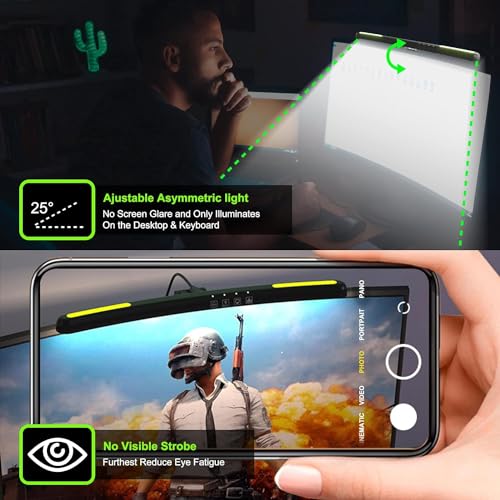 - 【إضاءة احترافية غير متماثلة بزاوية 45 درجة وبدون وهج على الشاشة】 يضيء ضوء الكمبيوتر فقط على سطح المكتب ولوحة المفاتيح ولا يعكس الوهج عن الشاشة. يحجب الوهج والضوء الأزرق بشكل مثالي من الشاشة. يمكن تركيب شريط إضاءة شاشة الكمبيوتر القابل للتعديل بسرعة ووضعه بثبات على الشاشة وإضاءة سطح المكتب بالكامل دون أن يشغل مساحة سطح المكتب.