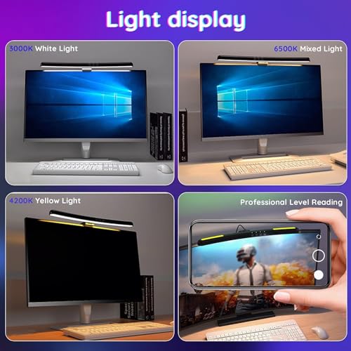 - 【تعتيم غير متدرج وتحكم في درجة حرارة 3 أضواء】 يمكن لشريط إضاءة الشاشة المنحني ضبط السطوع وتبديل درجة حرارة اللون. يمكنك ضبط إضاءة ليد للشاشة على درجة حرارة الضوء والسطوع المرغوب فيها بسهولة باستخدام زر اللمس الحساس. يلبي احتياجاتك في بيئة مختلفة.
