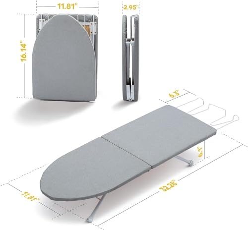 MOLOR - مولور لوح كي صغير لسطح الطاولة مع مسند حديدي، لوح كي صغير قابل للطي مع غطاء قطني، لوح كي محمول للسفر لتوفير المسافات 32 انش × 12 انش