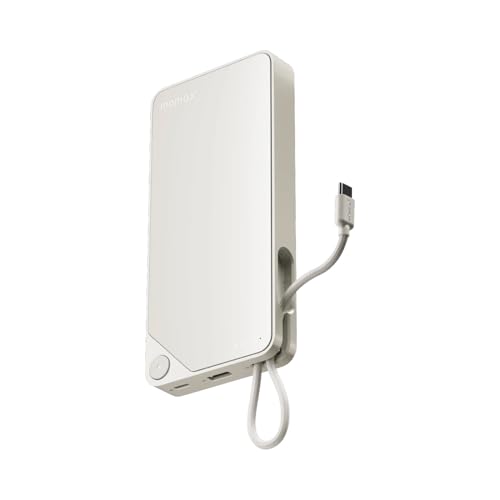 MOMAX - بطارية باور X1 بسعة 20000 مللي أمبير مع كابل USB نوع سي مدمج موماكس، لون أبيض