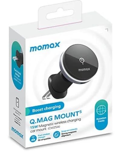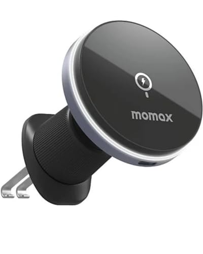 MOMAX - Momax Q.Mag Mount5, حامل شحن لاسلكي مغناطيسي للسيارة, أسود, ١٥ واط, مع إضاءة LED