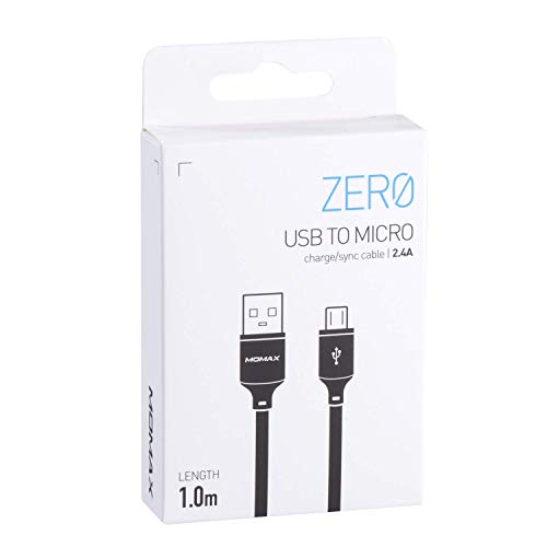 MOMAX - كابل شحن/ مزامنة بطرف USB وطرف ميكرو من موماكس زيرو | 2.4 امبير - 1 متر، اسود، حاسوب محمول، محول الشحن