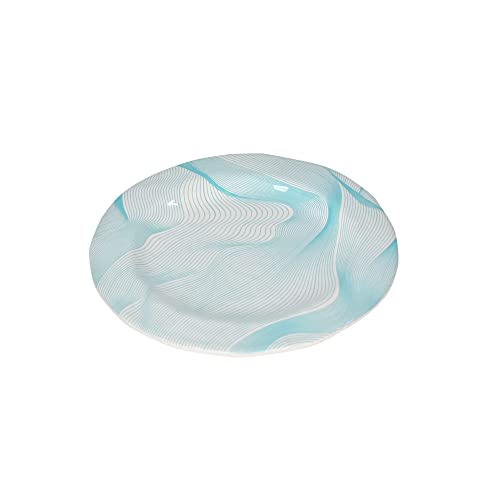 Moments - طبق عشاء انيق مستدير بنمط خطوط ورسوم زهرية من الميلامين مثالي لتقديم المكرونة/الحلويات/السلطة/الشوربة في المطبخ بلون اكوا بلو (خطوط اكوا بلو)