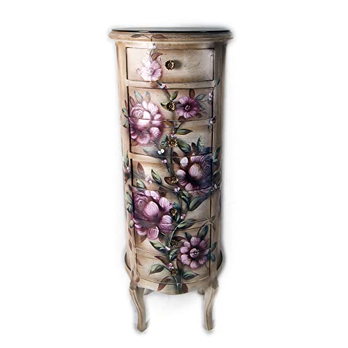 Momentum - خزانة من مومنتوم - 7 ادراج، مطلية يدويا، بلون بيج وبينك، خشب