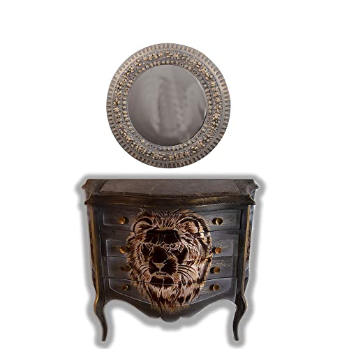Momentum - وحدة تخزين خشبية بمراة وسطح رخام من مومنتام، أزرق