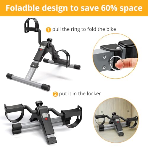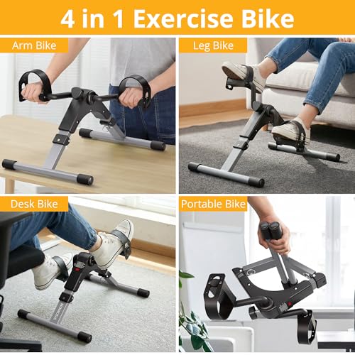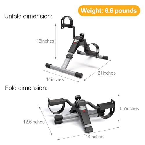 MOMODA - دراجة تمارين صغيرة بدواسة تحت المكتب للساق والذراع - دواسة قابلة للطي مع شاشة ال سي دي للمنزل والمكتب من مومودا