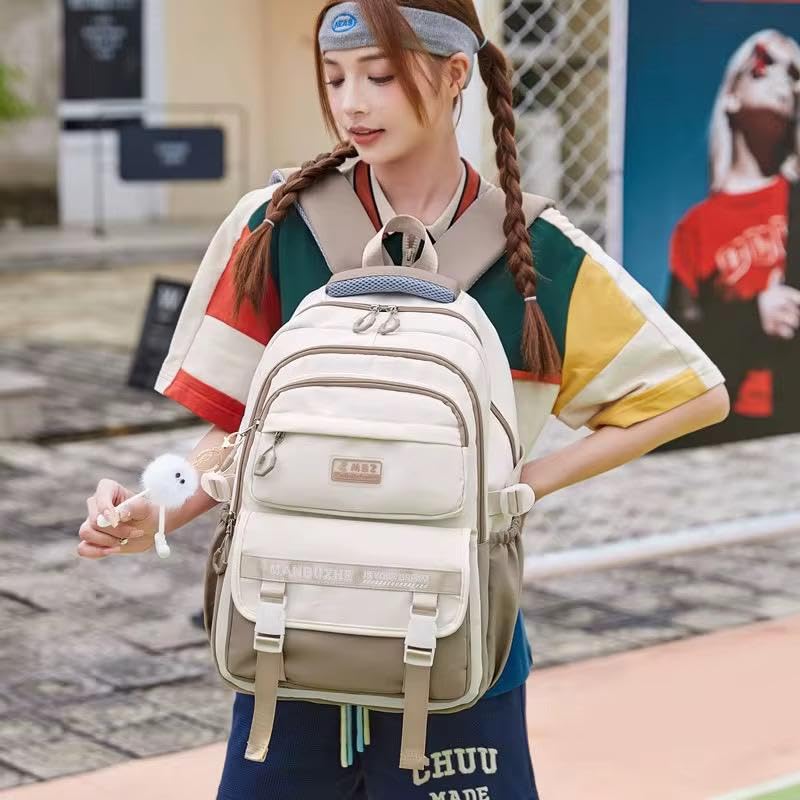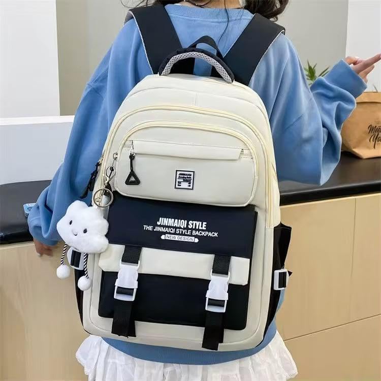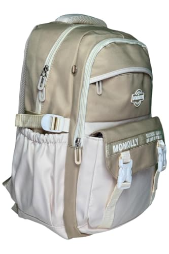 Qshop - شنطة ظهر مدرسية Momolly والاستخدامات اليومية و للابتوب من خامات متينة ومقاومة للماء - أكسسوارات تعليقة من القطيفة للمراهقات والطالبات والنساء( مقاس 44*29*18 سم)