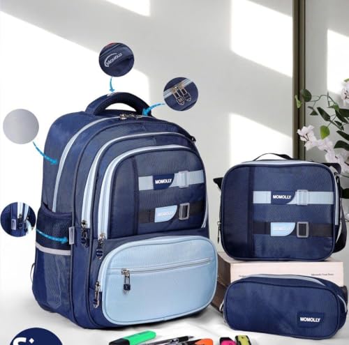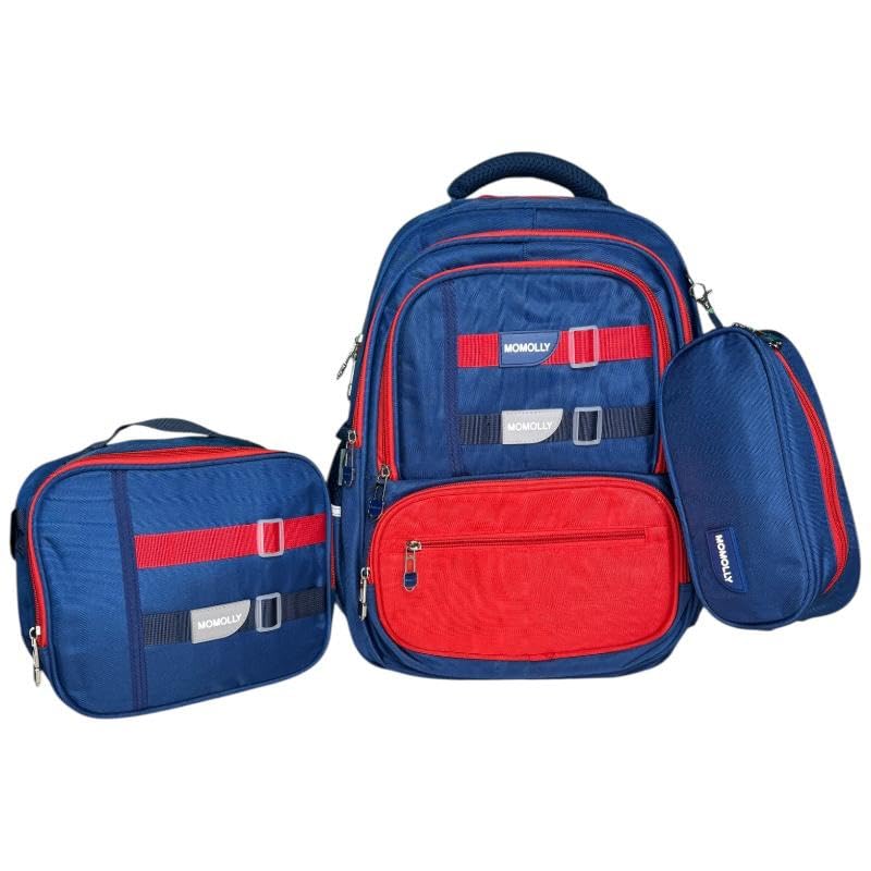Qshop - مجموعة شنطة Momolly ظهر مدرسية 3 قطع مقاس 17 بوصة ، طقم شنطة ظهر+ لانش باج + مقلمة ، للمدرسة والسفر والأنشطة الخارجية -ابعاد (44*32*17)