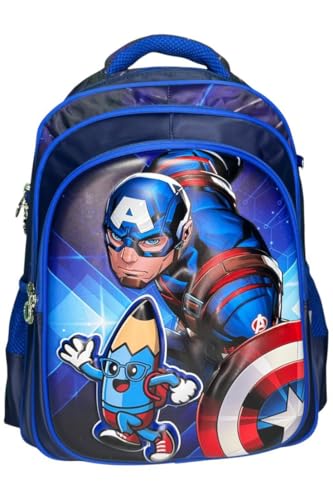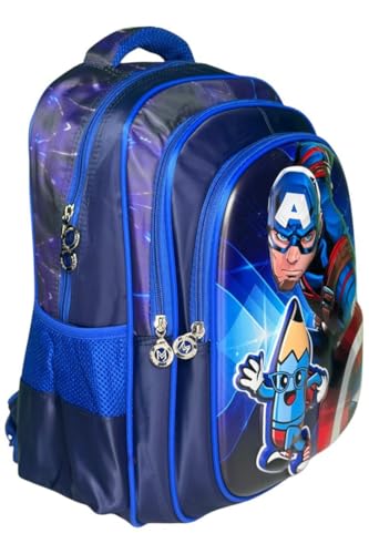 Qshop - مجموعة شنطة Momolly ظهر مدرسية 3 قطع مقاس 16 بوصة ، طقم شنطة ظهر+ لانش باج + مقلمة ، للمدرسة والسفر والأنشطة الخارجية - ابعاد (40*28*16) (Blue-Captain A)