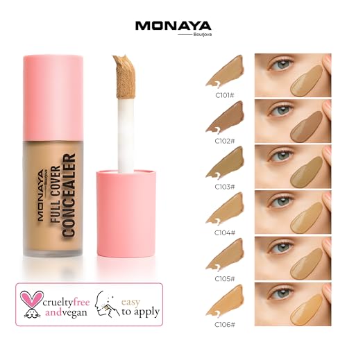 Monaya - سائل كونسيلر من مونايا بورجوفا بدرجة C102 لجميع أنواع البشرة بتشطيب طبيعي، مضاد للماء وتغطية كاملة طويلة الأمد