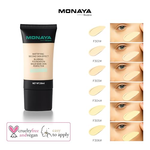 Monaya - كريم أساس سائل بورجوفا بتغطية مطفية كاملة مقاوم للماء يدوم طويلا، مكياج بأسعار معقولة، خالي من الزيوت بتأثير كونسيلر من مونايا (لون F303)