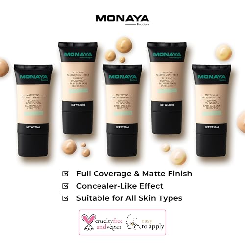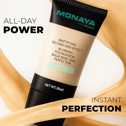 - Monaya Bourjova Perfect Matte Liquid Foundation – Full Coverage, Waterproof, Long-Lasting, 6 Shades (30ml) – Affordable Makeup, Oil-Free, Concealer Effect