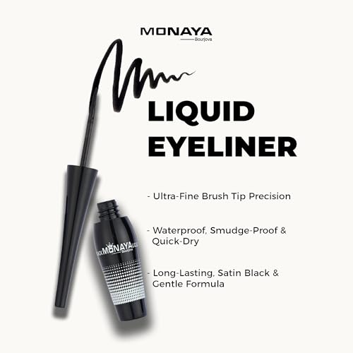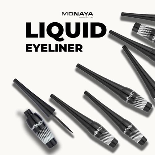 Monaya - قلم تحديد عيون سائل أسود لطيف، مكياج يدوم طوال اليوم برأس فرشاة دقيق ولمسة نهائية من الساتان تدوم طويلًا، مقاوم للتلطخ ومقاوم للانتقال - OSL-N006 من مونايا برجوفا