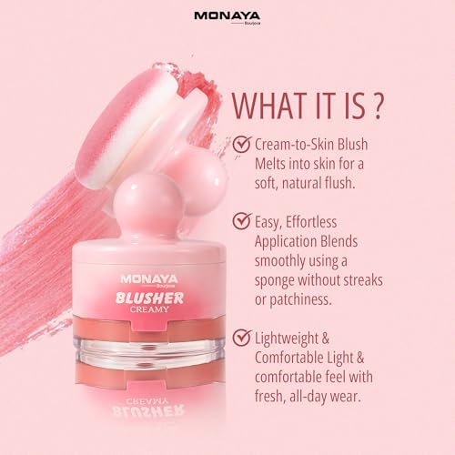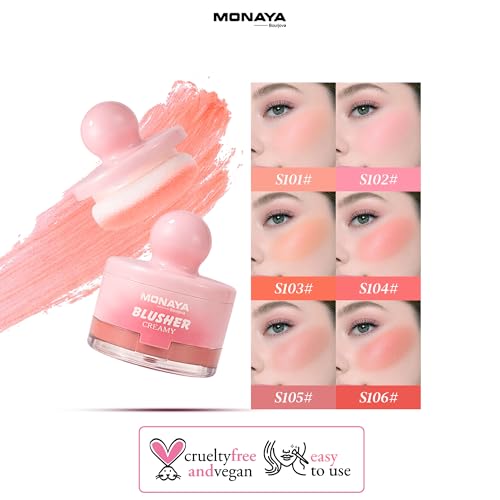 Monaya - احمر خدود كريمي للوجه S009 من مونايا - لمسة نهائية طبيعية، تركيبة خفيفة الوزن تذوب في البشرة، تحكم في اللون، يدوم طويلا، مناسب لجميع درجات البشرة (S101)
