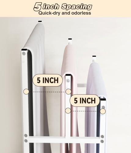 - 【يناسب أحجام المناشف المختلفة】يأتي رف تجفيف المناشف والعرض للحمام مع 3 قضبان مناشف سلمية، مقاس 36 انش و40 انش و44 انش من الأسفل إلى الأعلى. مناسبة لتعليق مناشف الحمام، والمناشف العادية، وكذلك مناشف اليد. هناك فجوة 5 انش بينهما، مما يسمح بتهوية جيدة ويجعلها مثالية لتجفيف مناشف متعددة في نفس الوقت. يساعد هذا التصميم على الحفاظ على جفاف المنشفة بفعالية.