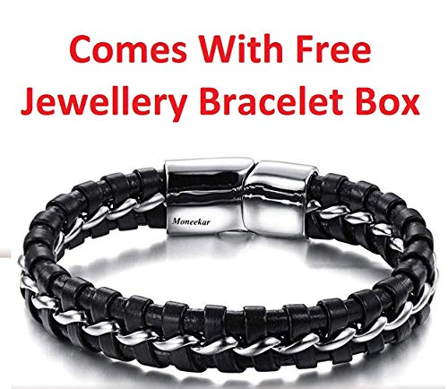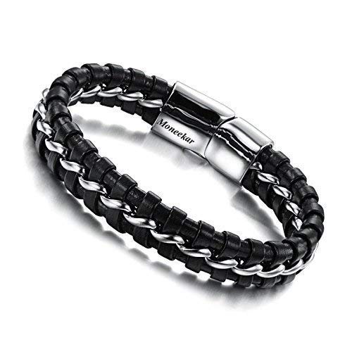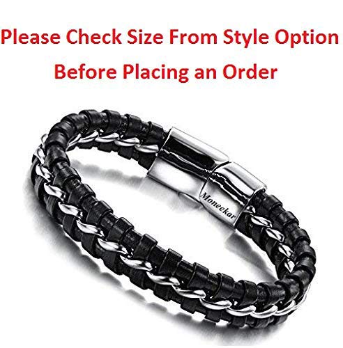 Moneekar - مجوهرات واساور جلد مضفرة من مونيكار للرجال اساور عصرية بمشبك ماجنتيك ستانلس ستيل, جلد