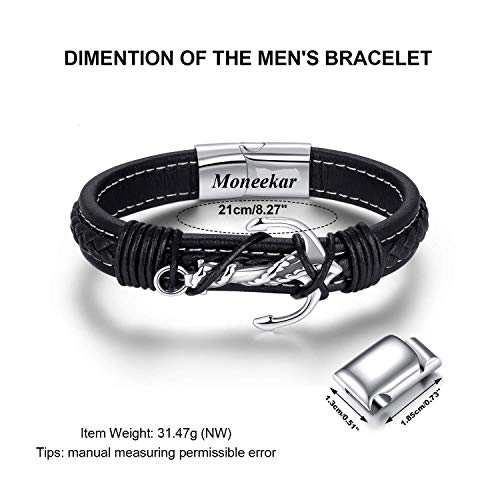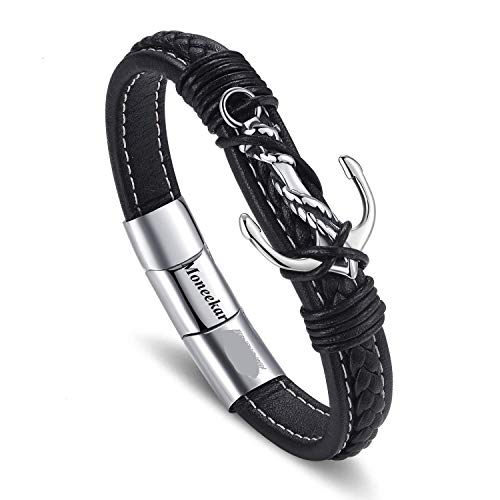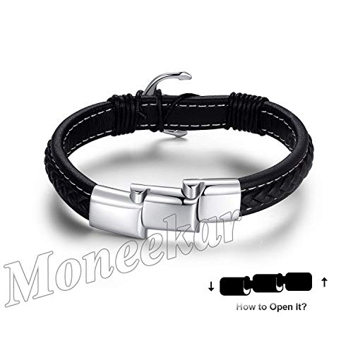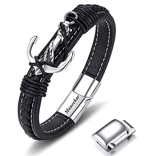 Moneekar - سوار ستانلس ستيل وجلد من مونيكار جويلز للاولاد والرجال, جلد