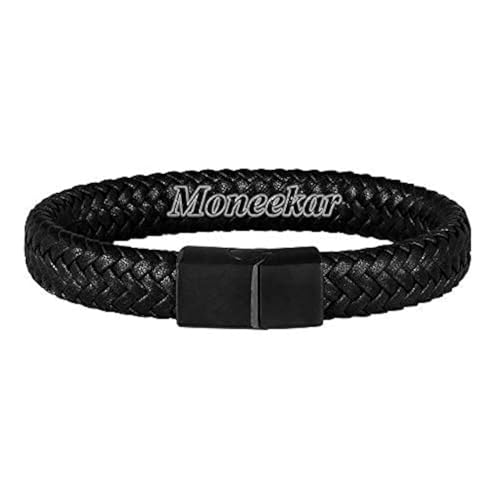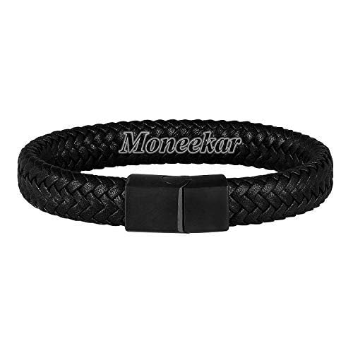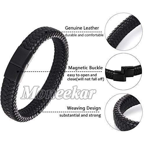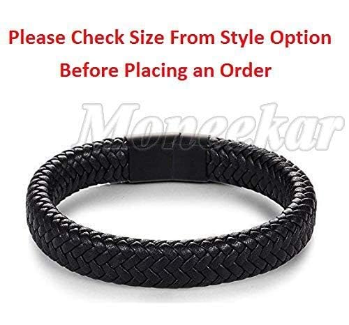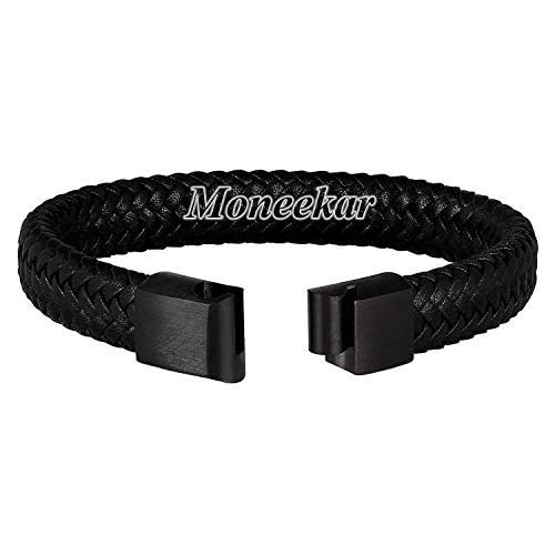 generic - سوار من الجلد والستانلس ستيل للاولاد والرجال من مونيكار جولز، جلد، اميترين