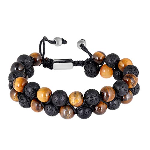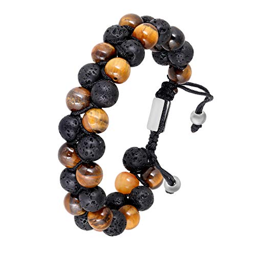 Moneekar - سوار من الجلد والاحجار الاستشفائية عين النمر وصخرة لافا للرجال والصبيان مونيكار جولز معدن
