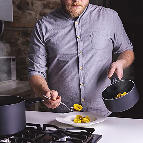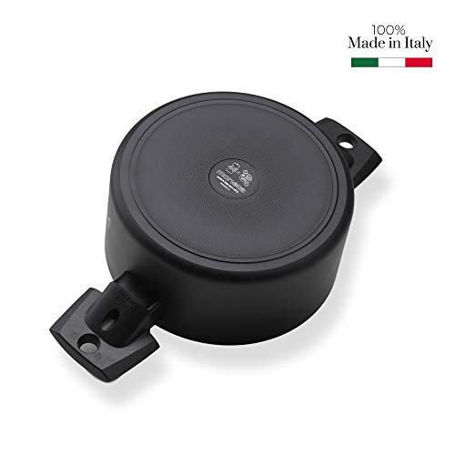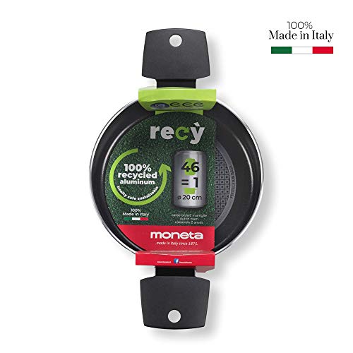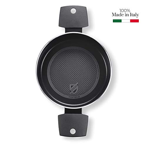Moneta - قدر طبخ من مونيتا، مصنوع من الألومنيوم، لون أسود، بطبقة غير قابلة للالتصاق، مقاس 20 سم، مع مقبض ثابت مزدوج. متوافق مع الحث ومقاوم للخدش وآمن في غسالة الأطباق