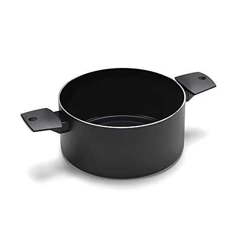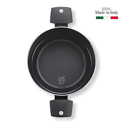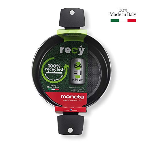 Moneta - قدر طبخ من مونيتا، مصنوع من الألومنيوم، لون أسود، بطلاء غير قابل للالتصاق، مقاس 24 سم مع مقبض مزدوج ثابت. متوافق مع الحث ومواد معاد تدويرها وآمن في غسالة الأطباق