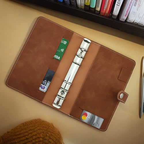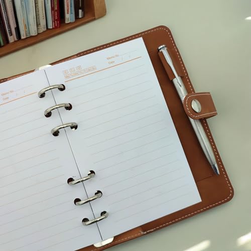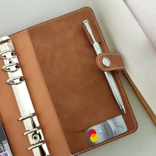 - غلاف دفتر ملاحظات فائق مصنوع من الجلد الصناعي مزود بعدد 6 حلقات دائرية مناسب لجميع الصفحات الداخلية بمقاس A6 المعياري