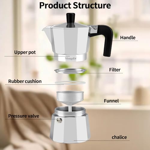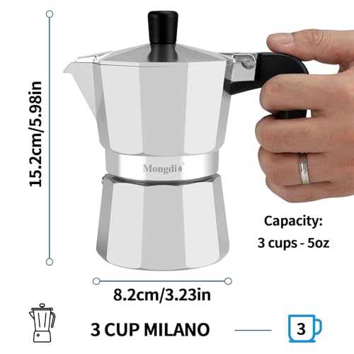 Mongdio - مونجديو ماكينة تحضير الاسبريسو والموكا من ستوفيتوب، ماكينة تحضير القهوة الكوبية على الموقد، وعاء موكا اليوناني الايطالي، 3 اكواب اسبريسو، 5 اونصة - فضي