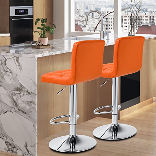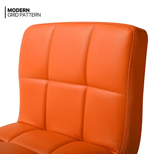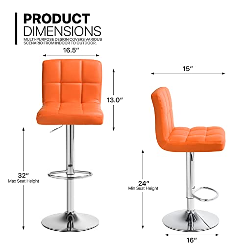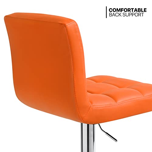 MoNiBloom - مونيبولوم مجموعة كراسي بار عصرية من قطعتين بظهر مربع من جلد البولي يوريثين بارتفاع قابل للتعديل مع مسند للقدمين للمنزل والمطبخ وغرفة الطعام، برتقالي