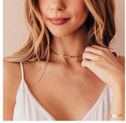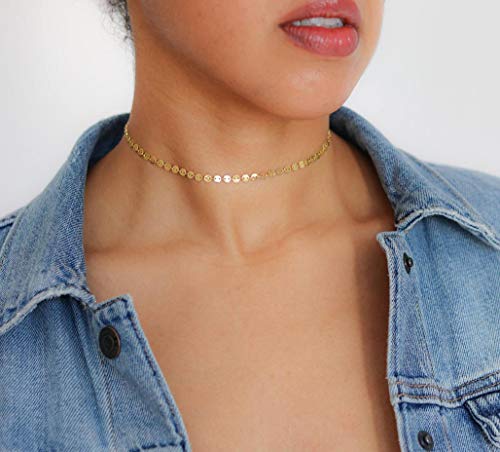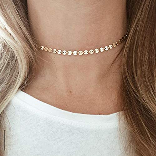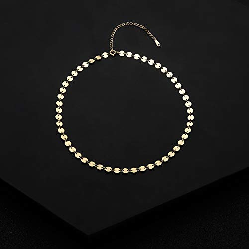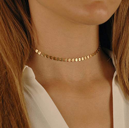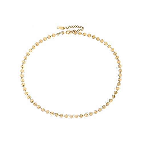 Monily - مونيلي قلادة شوكر انيقة بطبقات على شكل قرص من الفضة الاسترليني عيار 925 للنساء مطلية بالذهب الحقيقي 14 قيراط معدن