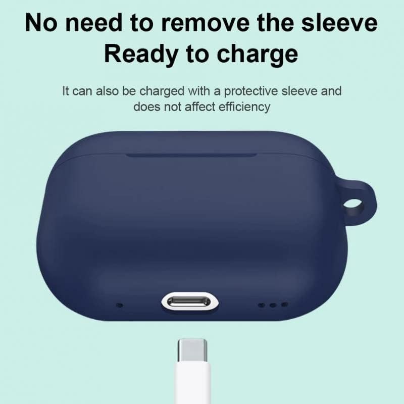 Moninsta - جراب حماية كامل من السيليكون الناعم بتصميم رفيع مضاد للصدمات مع سلسلة مفاتيح مضاد للانزلاق والخدوش متوافق مع ايربودز برو 2 من مونينستا (لون ازرق)