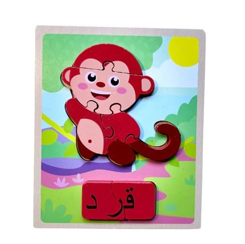 Generic - أحجية خشبية على شكل قرد مع اسمه باللغة العربية، 15 × 18 سم.