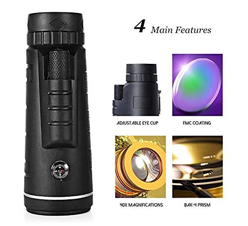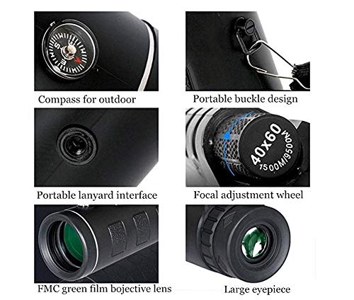 Other - تلسكوب أحادي العدسة عالي الطاقة 40 × 60، منظار أحادي العدسة رؤية ليلية منخفضة مع مشبك هاتف وحامل ثلاثي القوائم لمشاهدة الطيور والصيد والتخييم والمشي لمسافات طويلة والسفر والحياة البرية