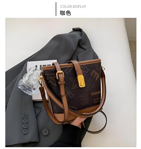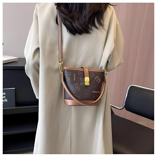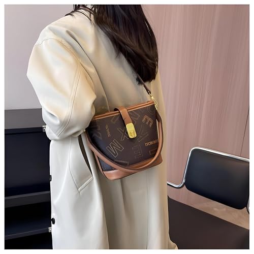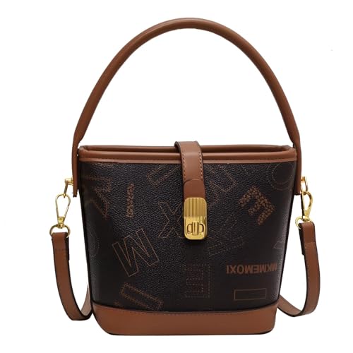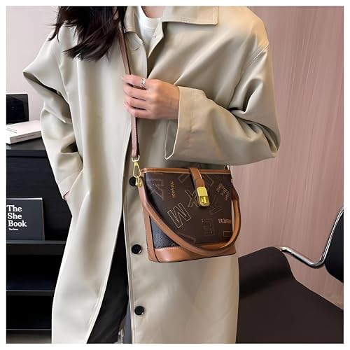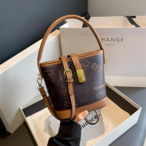 Generic - شنطة يد باكيت من مونوجرام - شنطة كروس انيقة من الجلد الفاخر مع قطع معدنية ذهبية، تتميز بنمط بني وبيج انيق، مساحات تخزين متعددة للحمل المنظم