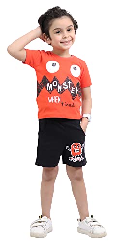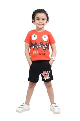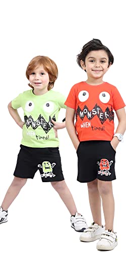 Choice N.C - بيجاما أولادي صيفي برسمة Monster – طقم نص كم وشورت مصنوع من قطن ناعم 100% بتصميم مريح وخفيف للبشرة الحساسة بجودة عالية code 604
