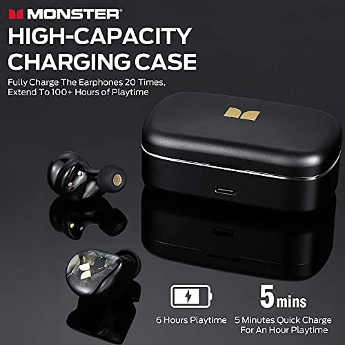 Monster - سماعة اذن لاسلكية ترو وايرليس بوضوح 700 ديسيبل، في الاذن، أسود