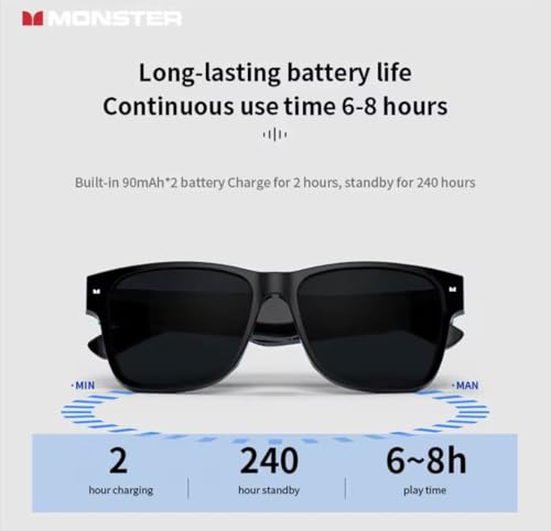 Generic - Monster S01 نظارات بلوتوث شمسية أصلية، إطار أسود كلاسيكي، عدسات مستقطبة، تصميم رياضي عصري