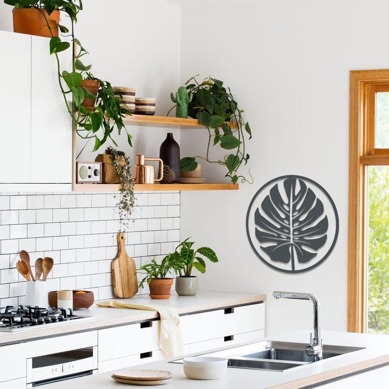 Generic - لوحة فنية جدارية بتصميم اوراق شجر من مونستيرا، مقاس 70×70 سم، لون اسود، WQ.WA146.04