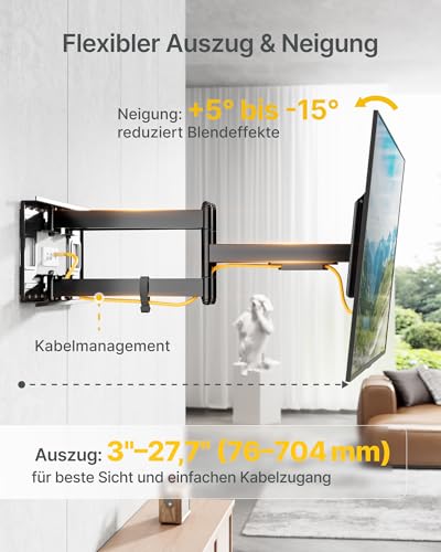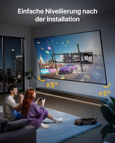 - مرونة قابلة للحركة بالكامل: يمكن تمديد حامل الحائط للتلفزيون هذا مقاس 85 بوصة بالكامل حتى 70.4 سم، ويوفر نطاق دوران يبلغ ±60 درجة للاتجاه الجانبي المرن ولديه نظام إمالة بدون أدوات يسمح لك بضبط الزاوية الرأسية بدون مسامير أو أدوات - مثالي لتقليل التوهج على شاشات 4K أو شاشة OLED الكبيرة. سواء كنت تمارس الألعاب أو تبث المحتوى أو تستضيف ليلة مشاهدة أفلام، استمتع بتعديلات سلسة وسهلة من أي نقطة في الغرفة. مثالي لمناطق المعيشة ذات المخطط المفتوح والزوايا ومساحات العائلة المشتركة.