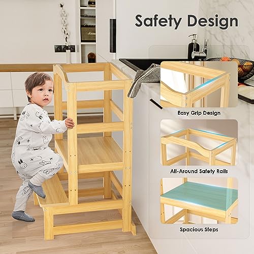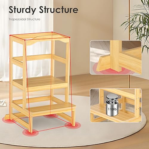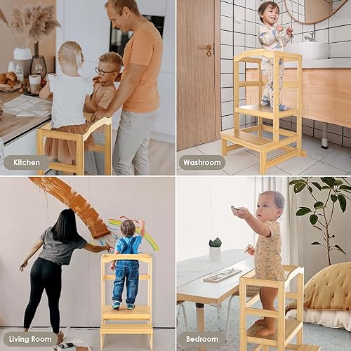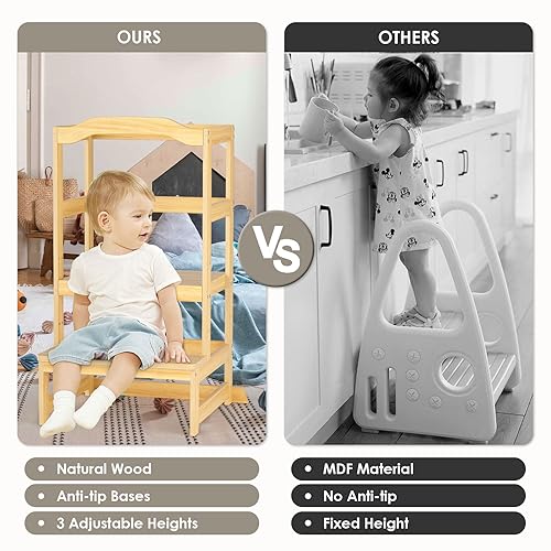 - 【مواد عالية الجودة】برج مراقبة الأطفال الخاص بنا مصنوع من مواد طبيعية، أكثر متانة وأقوى من المقاعد البلاستيكية أو الخشبية. بالإضافة إلى ذلك، فهي مطلية بعناية بطبقة ناعمة ومتينة وغير سامة وخالية من الرصاص وسهلة التنظيف ومستقرة للغاية.