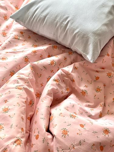 MonyHome - غطاء لحاف بكثافة 300 خيط وأطراف مطاطية من موني هوم، طقم غطاء لحاف مقاس كوين 2.4 × 2.2 م، لون فلورال ووردي