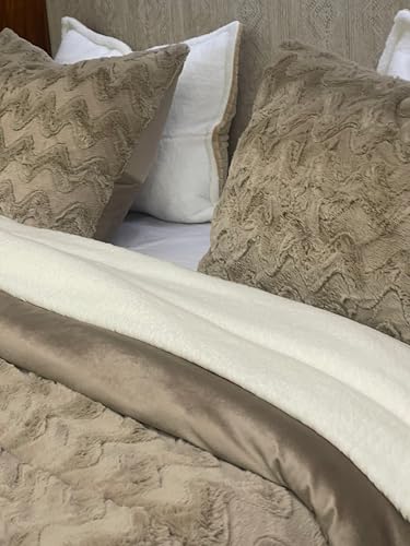 MonyHome - طقم شراشف من الفرو الصناعي بلون أخضر موس من موني هوم، مقاس مزدوج 2.40 متر × 1.80 متر، أخضر زيتوني