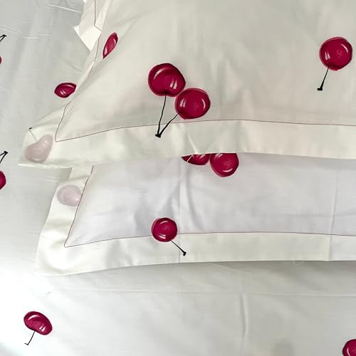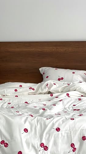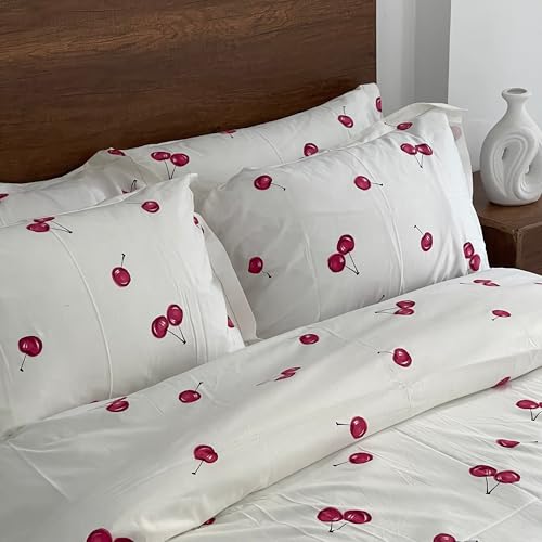MonyHome - طقم ملايات سرير مطبوعة بحواف أستك من موني هوم، مقاس مزدوج 2.4 × 1.8 متر، لون أبيض وأحمر نبيذي
