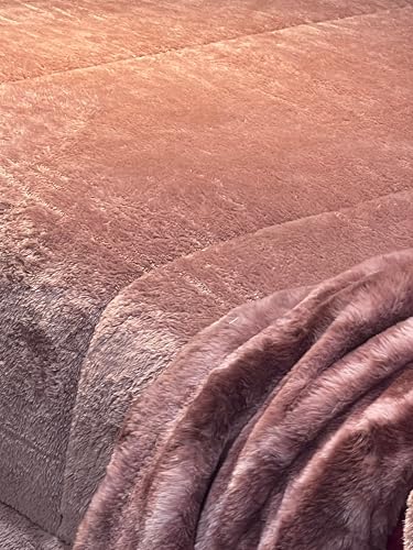 MonyHome - طقم ملاءة سرير من الفرو الصناعي من موني هوم، كينج 2.40 × 2.60 متر، 2 × كيس مخدة من الفرو الصناعي، رمادي غامق ووردي